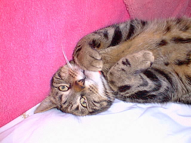 "Those of you that know me well will appreciate that on the whole I am a thoroughly miserable feline individual. For example if you were even to THINK about tickling this spotted tummy you may well lose your arm. Quite frankly I think you lot should get on with something more useful than looking at this. Email me at: ramses_the_cat@corfield.f9.co.uk Now, GET LOST, miaow!" |